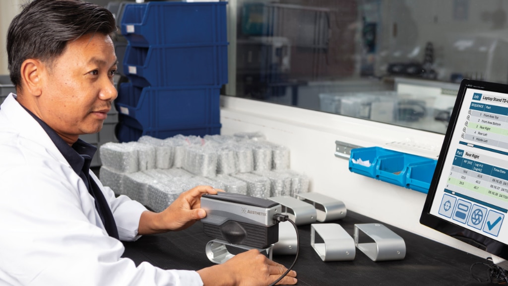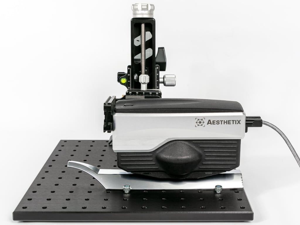 Das Aesthetix® umfasst eine USB 3.0 angeschlossene Sensoreinheit, die eine Vor-Ort-Inspektion mit einem Tablet, eine Oberflächenanalyse mit einem Labor-PC und eine Inline-Qualitätskontrolle über SPC ermöglicht.