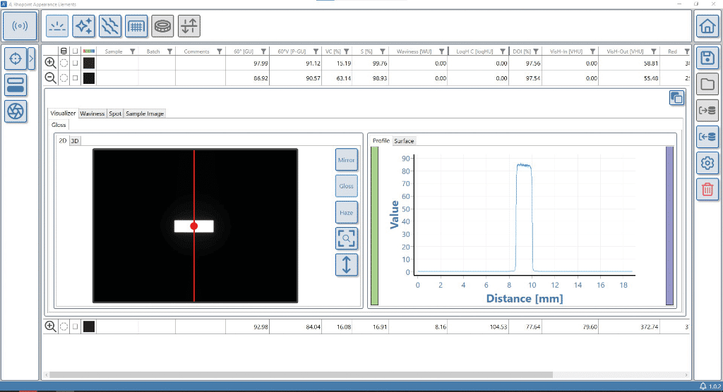 Die einzigartige Rhopoint Appearance Element Software ermöglicht eine technische Kontrolle auf der Grundlage von ISO- oder ASTM-Standardverfahren und gleichzeitig eine Überprüfung der visuellen Beurteilung.