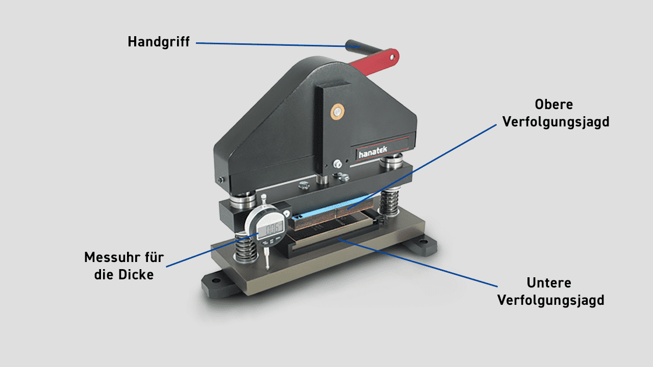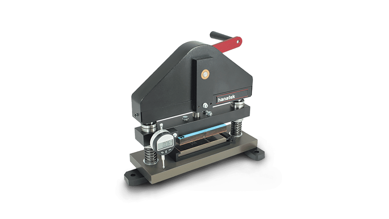 Mit dem Hanatek Crease Proofer vorbereitete Proben können mit dem Hanatek Kartonfalzgerät mit variabler Probengröße getestet werden. Kartonsteifigkeit und Faltenerholung können getestet werden.