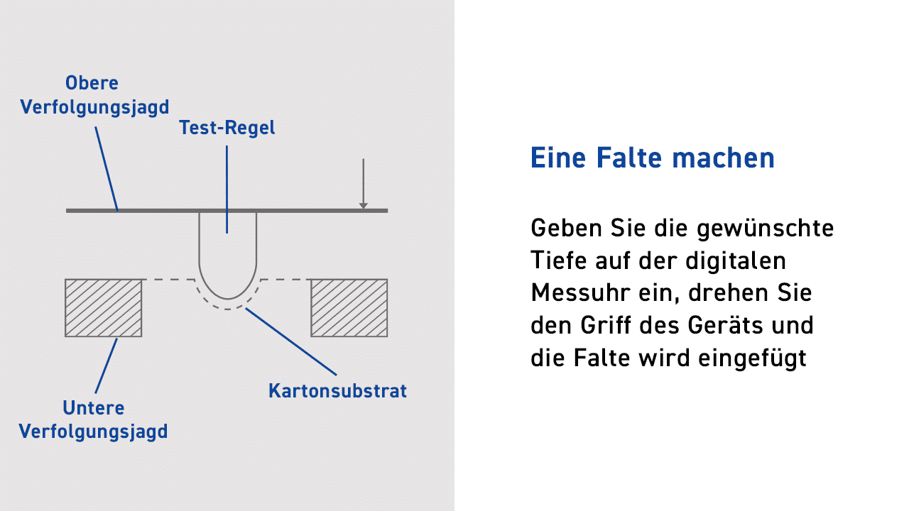 | Standards | BS 4818 Bestimmung der Rillbarkeit von Pappe (Pira-Verfahren) | |