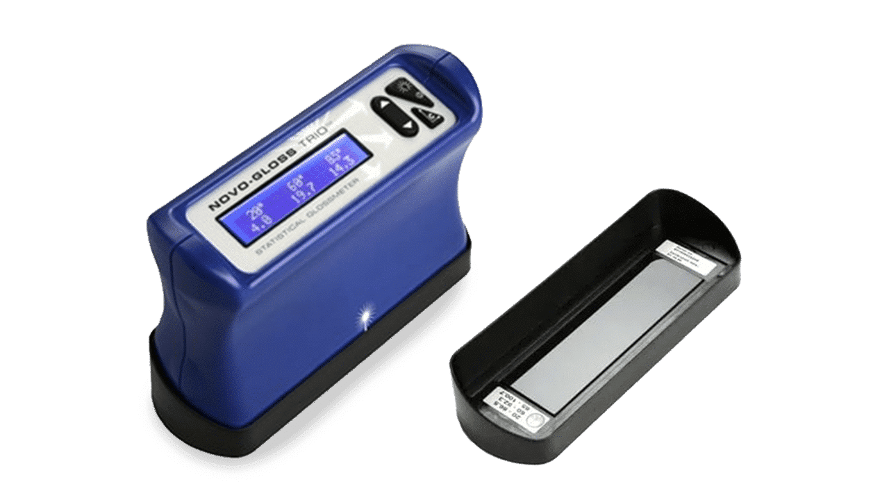 Jedes Glanzmessgerät wird vom Hersteller so eingestellt, dass es über seinen gesamten Messbereich linear ist, indem es anhand eines Satzes von Masterkalibrierungsplatten kalibriert wird, die auf das NIST (National Institute of Standards and Technology) rückführbar sind. Um die Leistung und Linearität des Glanzmessgeräts aufrechtzuerhalten, wird empfohlen, eine Prüfstandardkachel zu verwenden. Diesem Standardplättchen sind für jeden Messwinkel Glanzeinheiten zugeordnet, die ebenfalls auf nationale Standards wie das NIST rückführbar sind. Das Gerät wird anhand dieses Prüfnormals kalibriert, das gemeinhin als „Kalibrierkachel“ oder „Kalibrierstandard“ bezeichnet wird. Das Intervall, in dem diese Kalibrierung überprüft wird, hängt von der Häufigkeit der Verwendung und den Betriebsbedingungen des Glanzmessgeräts ab. Es hat sich gezeigt, dass Standardkalibrierkacheln, die unter optimalen Bedingungen aufbewahrt werden, verunreinigt werden und sich im Laufe der Jahre um einige Glanzeinheiten verändern können. Standardkacheln, die unter Arbeitsbedingungen verwendet werden, müssen regelmäßig vom Gerätehersteller oder einem Spezialisten für die Kalibrierung von Glanzmessgeräten kalibriert oder überprüft werden. Ein Zeitraum von einem Jahr zwischen den Neukalibrierungen von Standardkacheln sollte als Mindestzeitraum angesehen werden. Wenn ein Kalibrierungsstandard zu irgendeinem Zeitpunkt dauerhaft zerkratzt oder beschädigt wird, muss er sofort neu kalibriert oder ersetzt werden, da das Glanzmessgerät möglicherweise falsche Messwerte liefert. Nach den internationalen Normen ist die Fliese das kalibrierte und rückführbare Artefakt und nicht das Glanzmessgerät. Die Hersteller empfehlen jedoch häufig, auch das Gerät zu überprüfen, um seine Funktionstüchtigkeit in einer von den Betriebsbedingungen abhängigen Häufigkeit sicherzustellen.